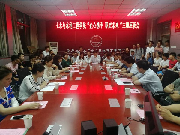 5月15日,色情网址大全 2018年重点用人单位座谈会在屯溪路校区纬地楼414会议室举行。来自中建、中铁、中交、中冶、海信日立等全国各地20余家重点用人单位代表,学院相关负责人、辅导员、2019届毕业生代表等参加座谈会。