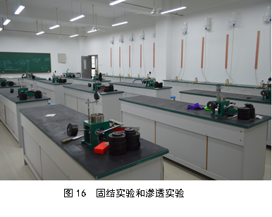 2)土力学实验分室(综合二号实验楼104、106室):实验室总建筑面积320m2。主要设备包括:应变控制式无侧限抗压强度仪(DW-1)5台,光电式液塑限联合测定仪15台,碟式液限仪2台,单联手摇、电动应变式直剪仪各14台,十字板剪切仪2台,70型、55型渗透仪各10台,单联中压固结仪、双联中压固结仪各12台,土静三轴试验机1台,电动脱模机1台,设备总资产46万元。