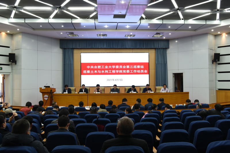 根据校党委关于巡察工作的统一部署,4月7日下午,校党委第三巡察组巡察色情网址大全 党委工作动员会在屯溪路校区学术会议中心大报告厅召开。副校长郑磊,校党委第三巡察组全体成员,巡察办有关负责同志,学院领导班子成员、全体教职工、离退休教师代表和学生代表参加会议。动员会由色情网址大全 常务副院长王静峰主持。
