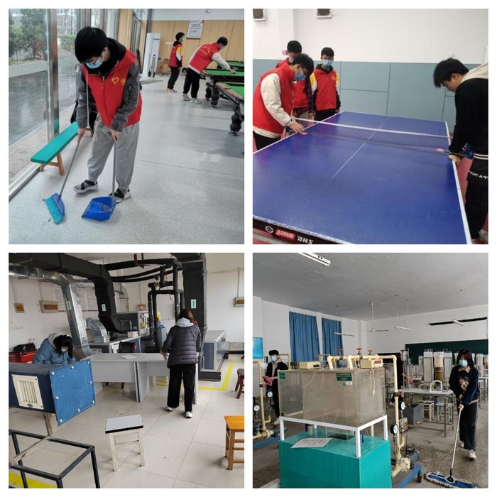 志愿服务实践,助力疫情防控。为积极响应学校疫情防控要求,学院学生志愿者参与到学校乒乓球室和台球室的值守管理工作以及实验室的清扫活动中。志愿者们整理清洁球室和实验室,及时更换不合格器材,为工大学子提供良好的体育锻炼环境和学习环境。学生党员代表胡兴隆同学积极投身学生社区服务工作,参与学校“齐心抗疫,一起守护工大校园”的公益宣传片拍摄,为校园防疫工作贡献力量。