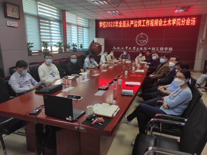 4月22日下午,学校召开2022年全面从严治党工作会议,深入学习贯彻习近平总书记在十九届中央纪委六次全会上的重要讲话精神,以及十九届中央纪委六次全会、2022年教育系统全面从严治党工作视频会议、安徽省十一届纪委二次全会精神,回顾总结学校2021年全面从严治党工作,分析研判当前面临的形势任务,部署安排2022年全面从严治党重点工作。校党委书记余其俊作全面从严治党工作报告。校长梁樑主持会议。学院在纬地楼414会议室设置线上视频会议分会场,学院党委委员、纪委委员、各教工党支部书记及党支部纪检委员参会。