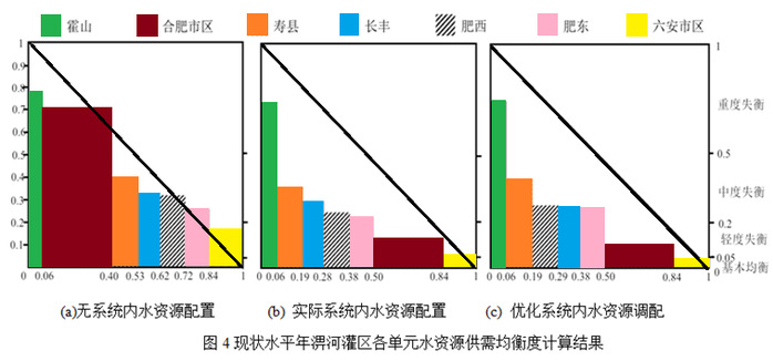 该文提出的单元供需均衡度,通过分析计算区域水量供需差与供需总水量的关系,能同时刻画缺水地区供水不足程度和丰水地区水资源富余程度,直观反映供需矛盾的大小,使我国不同地域的指标评价结果具有可比性和通用性。基于联系数的智能评价方法对揭示区域水资源空间均衡状态现状及趋势是合理可靠的,优化的水资源调配方案可有效地提升水资源空间均衡状态,为实现大型灌区水资源供给与社会经济发展、生态文明建设相适应,改善区域水资源系统空间均衡状态提供参考。