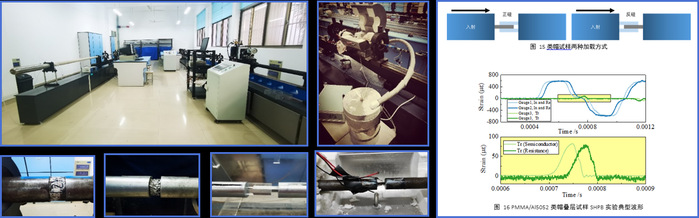 冲击动力学实验室主要从事材料的动力学行为研究。实验室主要设备有4套霍普金森杆实验平台——含冲击压缩及冲击拉伸2种加载方式,每个平台配有高强铝和高强钢2种杆材,杆件直径共有5种不同直径,小至Φ6mm微型杆,大至Φ74mm大直径杆。1套动态加载下适配多平台的高低温装置,温度范围-70~300℃。2台各4通道DH5960超动态信号测试分析系统,配备同步时钟可8通道并行采集,频响达1MHz。2台各6通道的CS-1D型超动态应变仪,频响达1MHz。1台12通道PCI数采系统,采样频率范围1kHz~40MHz。1台RSM-SY5非金属超声波监测分析仪。
