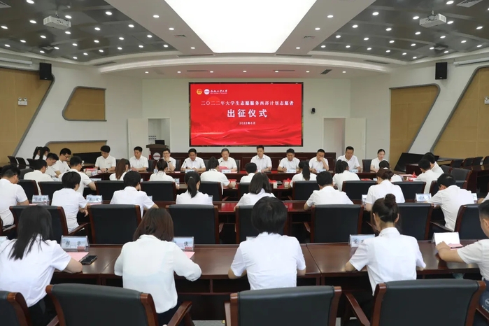 出征仪式上,陈刚为志愿者们赠送了《习近平与大学生朋友们》等书籍。党委学生工作部部长钟小要宣读了2022年大学生志愿服务西部计划志愿者名单。志愿者代表发言,深情地讲述了自己加入西部计划的初心和未来的人生规划。他们表示将秉持“厚德、笃学、崇实、尚新”的校训,以开拓创新的奋斗姿态,奏响志愿服务西部的时代强音。