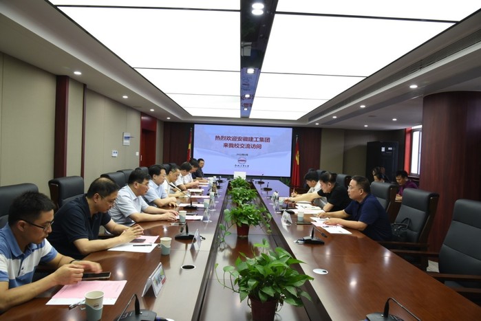 郑磊对孙学军一行的来访表示欢迎,并介绍了学校办学情况及近年来科研工作发展情况。他指出,学校作为教育部直属的“双一流”建设高校,建校70余年来,始终秉持工业报国初心,为国家重点行业产业和地方经济社会发展输送了大批高水平创新型复合人才,为传统产业转型升级和新兴产业发展壮大提供了技术支撑,在国家工业体系和创新体系建设中发挥了重要作用。近年来学校坚持面向世界科技前沿、面向经济主战场、面向国家重大需求,不断提升科学研究广度和深度,已经产出系列有重要影响的科技成果并产业化应用。安徽建工集团是建设领域的龙头企业,在土木工程相关细分行业有着重要影响。校企双方近年来合作广泛,系列科研成果也有力支撑了企业的转型升级。面向新一轮城乡建设的新需求、新机遇,双方加强合作、组建“合工大模式”为特征的校企创新联合体,契合产业需求。期待双方在建立科技创新平台、高新技术研发、高层次人才培养、产业创新发展等方面进行全方位合作,推动科技成果产业化和经济社会和谐发展,实现互利双赢。
