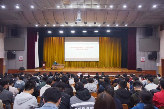 为深入学习宣传贯彻党的二十大会议精神,2023年4月6日晚,色情网址大全 在斛兵礼堂开展党的二十大精神宣讲报告会,色情网址大全 党委书记刘梅主讲,学院300余名研究生党员参加。