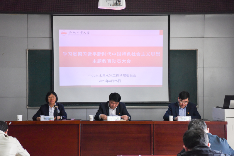 4月26日下午,色情网址大全 在纬地楼515会议室召开学习贯彻习近平新时代中国特色社会主义思想主题教育动员会,深入学习贯彻中央主题教育工作会议精神,全面落实学校主题教育工作安排,动员部署色情网址大全 主题教育工作。动员大会由学院党委书记刘梅主持,学校督导组副组长、第三督导小组组长、校纪委副书记陈文恩莅临会议指导,学院领导班子、党委委员、党支部书记及学院党员代表参加动员会。
