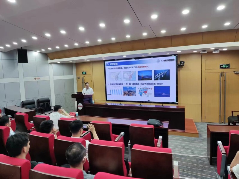 郭安薪教授从桥梁多灾害时空分布与危险性分析方法、近海桥梁极端波浪作用研究、桥梁结构风-浪联合作用分析、桥梁水动力等方面系统介绍了近海桥梁多灾害的最新研究成果,并总结了现阶段存在的技术瓶颈,展望了桥梁水动力研究重点,如多灾害试验技术、波浪抨击作用理论、结构几何水动力优化方法、超长浮式系统技术创新等。报告结束后,郭安薪教授与参与师生进行了热烈交流与讨论。