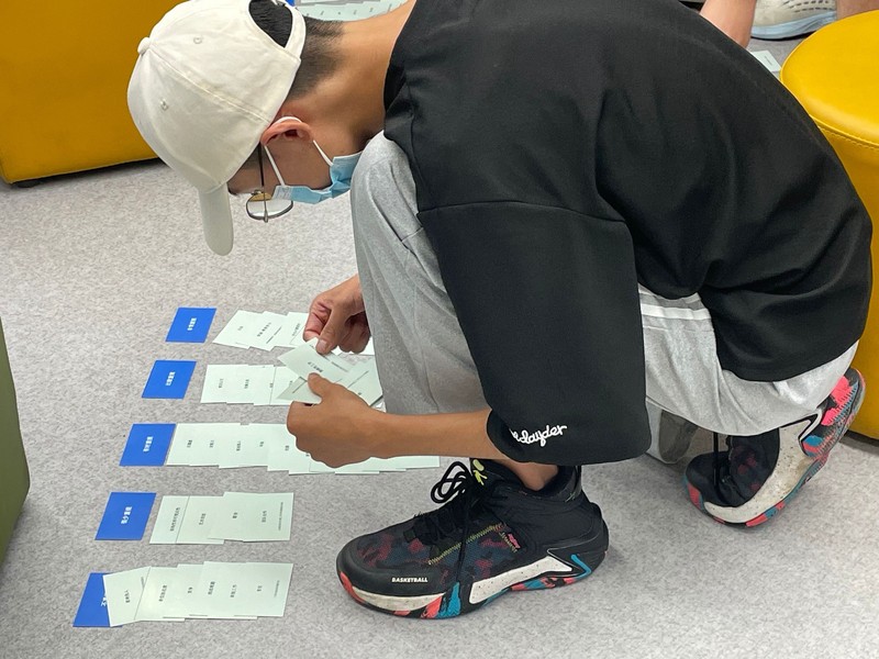 本次活动共分为团队建立、自我认识、价值观与兴趣探索、时间管理和职业初规划五个主题。团队建立环节中,陈奕达老师通过“相识便是缘分一场”游戏破冰,活跃现场气氛。随后,同学们通过“生涯人物访谈”进行自我介绍、互相认识,在讨论声中产生了各个小组的组歌、组名和小组创意海报。在自我认识环节,“九宫格绘画”和“性格探索”测试帮助同学们更清楚地认识自我,了解自己的性格类型。“我的性格特点是什么?未来哪个职业更适合我?”学生们在思考中进一步认清自我,探索自己的性格偏好,进一步明确方向和目标。在价值观与兴趣探索环节,“价值观游戏卡”上对百余种职业进行描述,帮助大家更加深入地理解职业价值观的种类。“兴趣分类卡”可以帮助同学们更深入的了解自己的兴趣,帮助大家更明晰自己的价值观,为自己的求职之路和职业规划做出有效参考。时间管理环节上,“时间流水账”和“时间馅饼”练习可以引导同学们设定合适目标,做好时间分配和规划,通过计划、目标、时间分配、集中注意力、优先处理、简化和利用工具等提高时间管理能力。最后,同学们进行了自我报告和自我总结,分享学习体会,互赠祝福后活动落在帷幕。