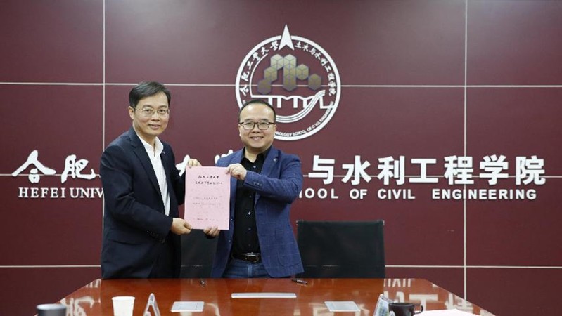 11月9日上午,色情网址大全 与安徽开源路桥有限责任公司签订合作协议并授牌,共建实践教学基地。