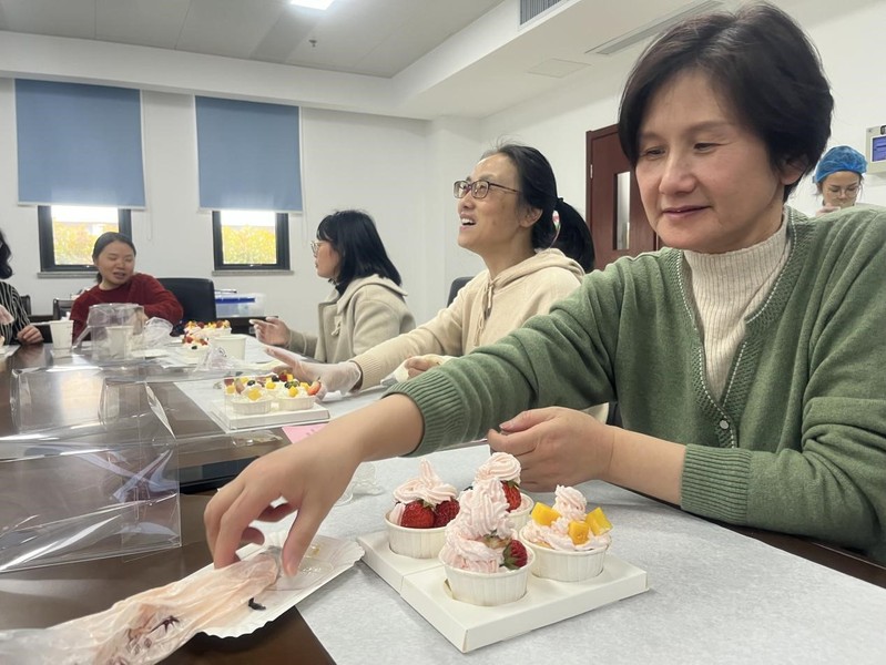 活动中,斛兵心语西点房烘焙师带领女教职工们亲手制作蛋糕,红颜的草莓、香甜的芒果、新鲜的蓝莓、焦脆的饼干将蛋糕装饰得分外诱人,低糖的奶油、定制的糕点健康可口,活动现场氤氲奶香,“焙”感温暖。
