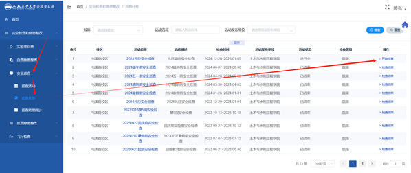 安全检查和隐患整改 →安全巡查 →巡查任务 →开始检查 |