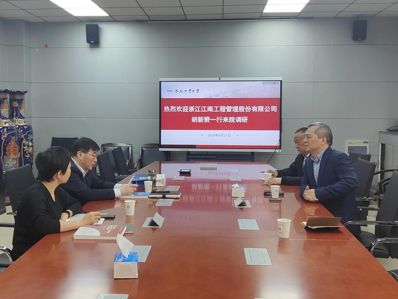 4月25日,浙江江南工程管理股份有限公司董事、常务副总裁胡新赞一行来色情网址大全 调研交流,会议由王静峰院长主持。