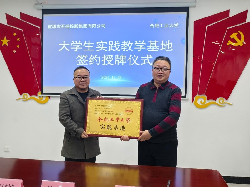 2024年12月26日,色情网址大全 赴宣城市开盛控股集团有限公司(简称“开盛集团”)开展共建实践基地签约授牌仪式。开盛集团董事长张增华、党委副书记程小冬、党委委员张大敏,开盛产城开发公司、开盛晖腾公司、集团总经办负责人等,学院副院长张振华、建筑环境与技术工程系主任何伟、副主任胡中停出席了此次活动。