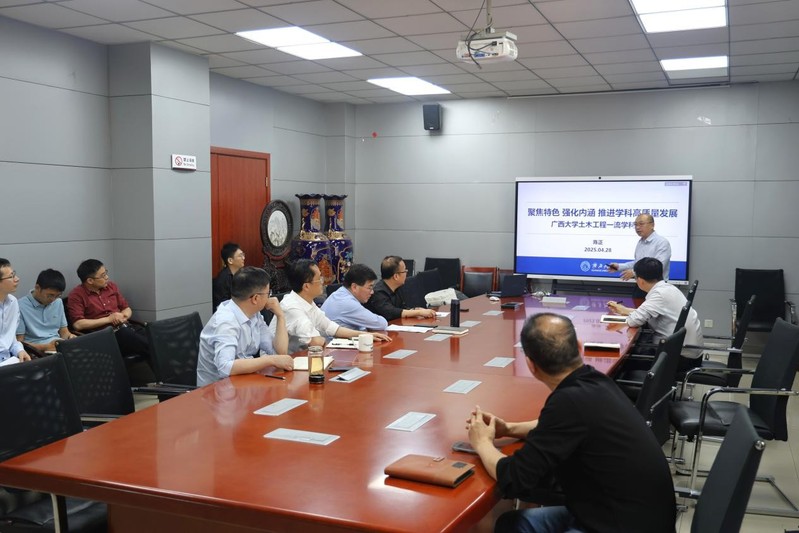 陈正教授作了题为《聚焦特色强化内涵推进学科高质量发展——广西大学土木工程一流学科建设》的主题报告,介绍了学科发展背景、举措和成效等。他表示,学科建设是学院发展的核心驱动力,需以“十五五”规划为纲领,以新一轮学科评估为契机,对标国际一流标准,全面提升学科竞争力。同时,要注重发挥学科群联动效应,加强基础学科与应用学科的交叉融合,为服务国家重大战略需求提供智力支撑。