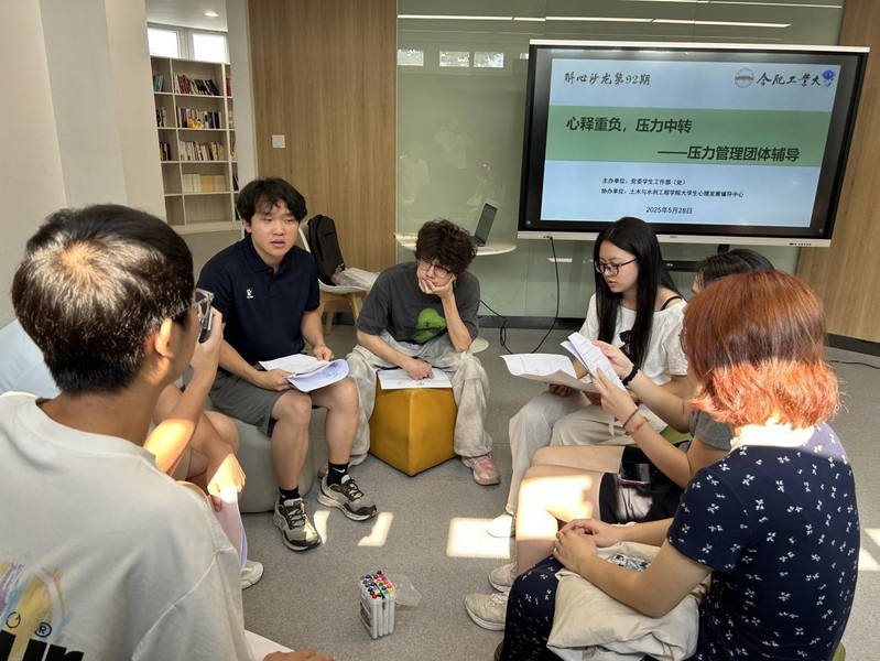 528日下午,色情网址大全 在屯溪路校区五号宿舍楼学生社区沙龙空间开展“心释重负,压力中转”研究生压力管理团体辅导,学院大学生发展辅导中心主任胡倩倩担任领导者,14名在校研究生参加了此次活动。