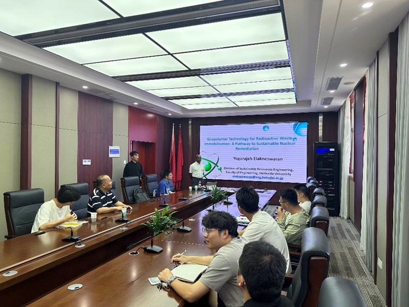 在交流环节中,Elakneswaran教授与我校师生围绕地聚合物固化机理、有机化合物固化特性以及放射性废物安全处置等议题展开了深入讨论。与会师生纷纷表示,报告内容前沿且深入,拓展了大家在放射性核素固定与绿色建材领域的学术视野。