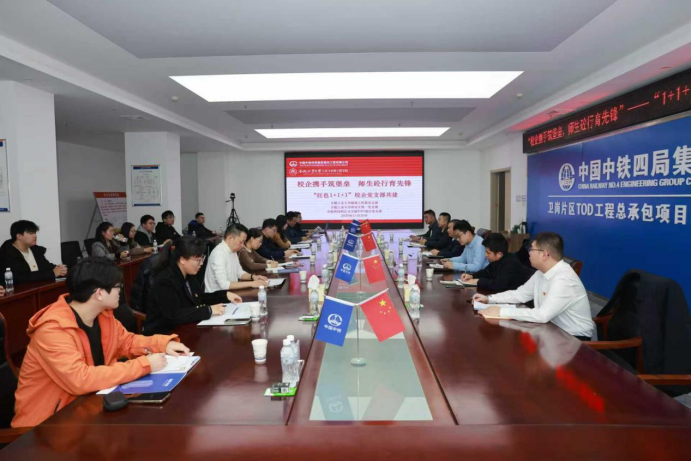 在党支部共建、产学研用座谈交流会上,中铁四局集团第四工程有限公司党委副书记周先林致辞,他系统介绍了公司发展历程,着重阐述了党建与生产经营中心工作相融合的创新路径,及将党建政治优势转化为企业竞争优势与发展优势的具体方法与重要意义。学院副院长高鹏在交流中代表学院,向中铁四局集团第四工程有限公司长期以来在人才培养、实践教学、实习就业等方面给予的大力支持与深度协作表示诚挚感谢。他表示,企业的优质资源为学院学子搭建了理论联系实际的重要平台,此次党支部共建更是深化校企合作的重要契机,希望以党建为纽带,进一步拓宽合作领域、提升合作层次,实现校企双方优势互补、共赢发展。双方各部门负责人与师生党员们,围绕行业现状、发展前景、人才需求与培养、求职招聘、产学研合作等议题进行了深入交流。