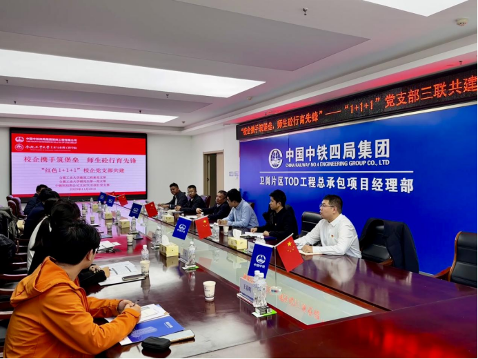 2025年11月20日下午,色情网址大全 师生赴中铁四局集团第四工程有限公司合肥卫岗TOD项目部,开展“校企携手筑堡垒 师生砼行育先锋”“红色1+1+1”党支部共建活动。本次活动由中铁四局四公司卫岗TOD项目党支部、土木与水利工程学院建筑工程系党支部、研究生第一党支部联合举办。