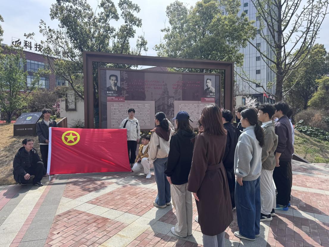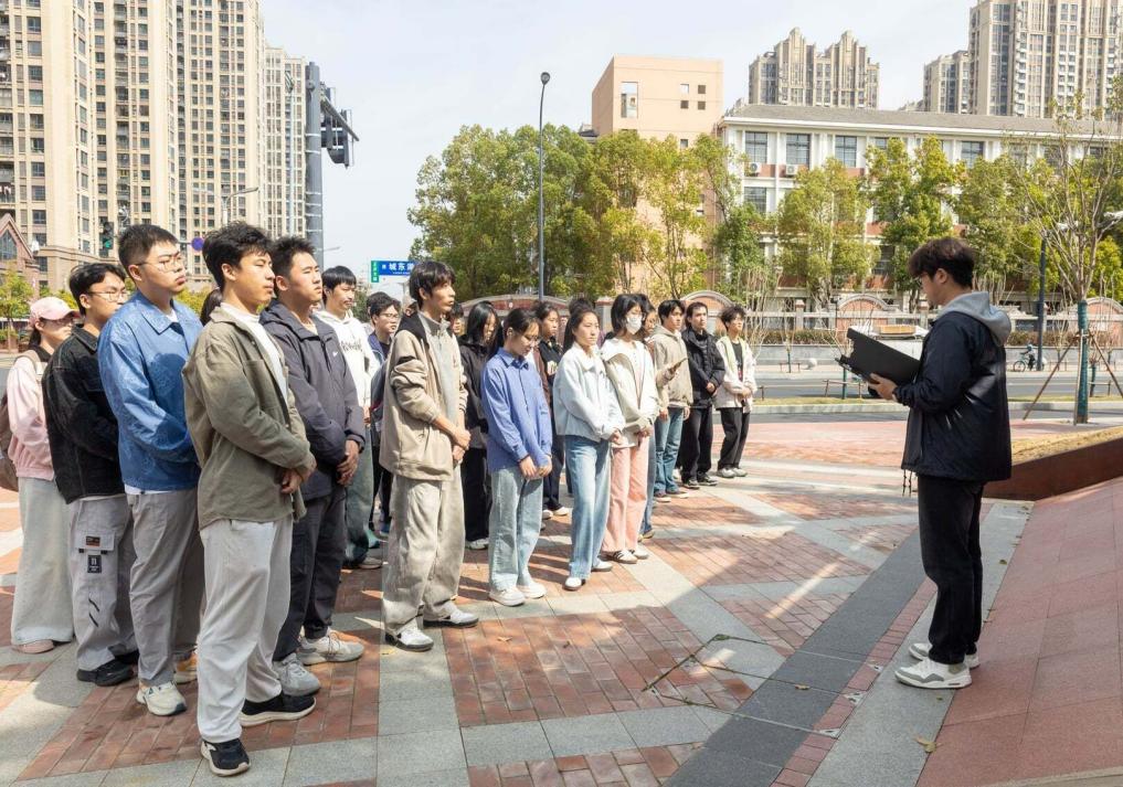 延乔路作为纪念陈延年、陈乔年两位革命烈士的重要地标,是传承英烈精神的重要载体。活动现场庄严肃穆,全体同学整齐列队,在纪念标识前肃立默哀,向革命先烈表达深切悼念与崇高敬意。2025 级本科生黄森深情讲述了陈延年、陈乔年烈士追求真理、投身革命、坚贞不屈、视死如归的英雄事迹,阐释了“坚守信仰、舍生取义、心系家国”的延乔精神。随后,汤若晴同学带领全体同学面向团旗,高举右拳,重温入团誓词。铿锵有力的誓言回荡在延乔路上,彰显出青年学子坚定理想、矢志不渝的信念与担当。同学们还驻足观看事迹展陈,感悟延乔路从“荆棘之路”到“繁华大道”的历史变迁,深切体会今日国泰民安的来之不易。